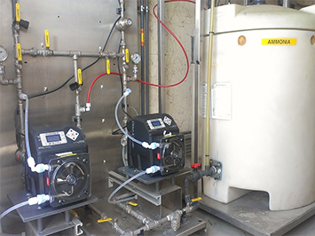 Bơm nhu động lắp đặt trong nhà máy xử lý nước thải